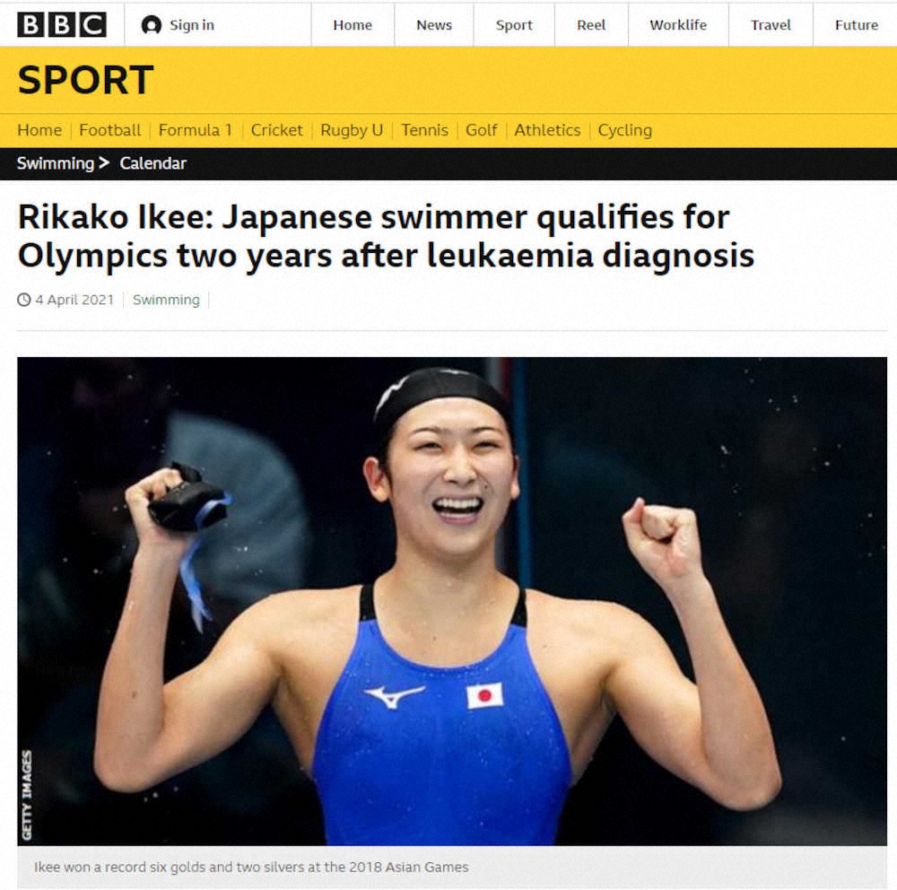 決勝レース直後から海外メディアは池江の劇的な復活劇を速報。英BBC、米NBC、米CNNなどに加え、UAEガルフニュース、米水泳専門誌スイムスワムなどが快挙を報じた。さらに国際オリンピック委員会(IOC)も公式ツイッターでバッハ会長のメッセージを投稿。「オリンピアンたちは決して諦めない。池江は白血病と診断されてから、わずか2年で東京五輪の出場権を得た。東京で会うことが待ち切れない」と祝福した。IOCトップが個人の代表内定に言及するのは異例だ。