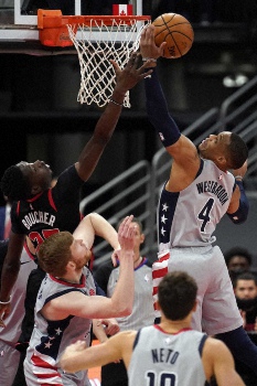 ラッセル・ウエストブルック(32)は23得点、14リバウンド、11アシストで今季19回目のトリプルダブルを達成し、第4Qの残り41・2秒には再逆転となる3点シュートを成功。先発したイスラエル出身の新人フォワード、デニ・アブディヤ(20=全体9番目指名)も12得点と10リバウンドを稼いだものの、第4Qでは連続12失点などで15―28とリズムを失った。