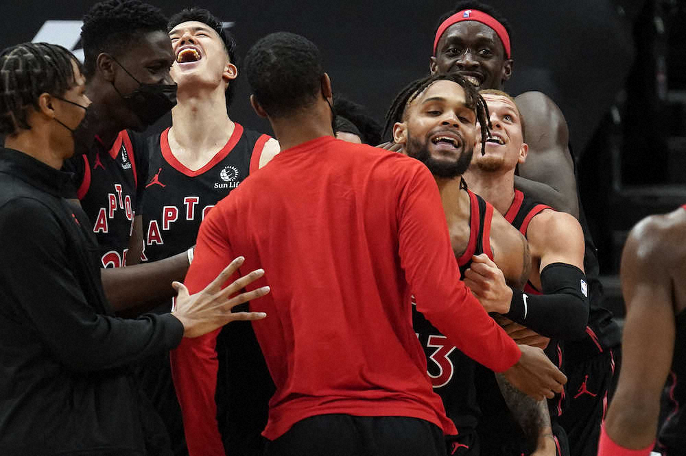 カイル・ラウリー(35)とフレッド・バンブリート(27)の両先発ガードを故障で欠くラプターズは20勝30敗。トレントは16得点を記録し、パスカル・シアカム(26)が22得点、新人ガードのマラカイ・フリン(22=全体29番目指名)がベンチから出て16得点を記録して土壇場での逆転に成功した。