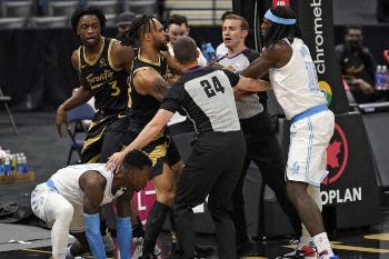 シュルーダーは通常の反則をコールされたが、アヌノビーは退場処分。このとき2人の間に入ろうとしたレイカーズのフォワード、モンントレズ・ハレル(27)も退場を宣告された。