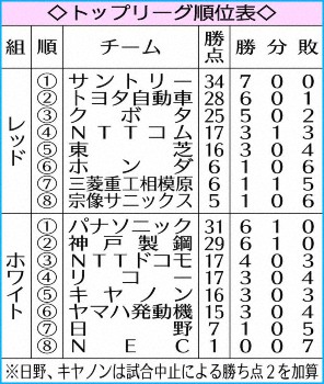 サントリーが今季リーグ最多、チーム史上でも最多の94得点で大勝し、唯一の7戦全勝でレッドカンファレンスを1位通過した。今春早大から加入したばかりのFW下川甲嗣(22)がデビュー戦で初トライ。3季ぶり単独最多6度目の優勝へ、選手層の厚さも示した。この日でリーグ戦が終了し、全順位が確定。下部トップチャレンジリーグの上位4チームも加わるプレーオフトーナメントは17日に開幕する。