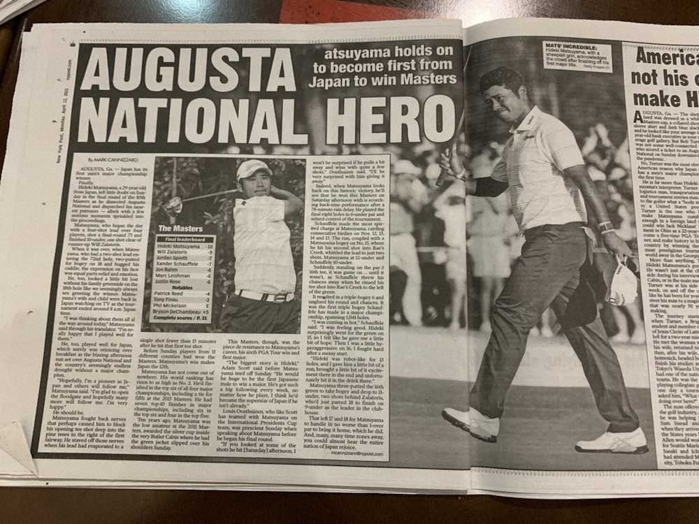 松山のマスターズ優勝を伝えるニューヨーク・タイムズ紙 Photo by スポニチ 松山快挙を海外メディアも大きく報道、NYタイムズ「革新的勝利。英雄」 ギャラリーで見る この記事のフォト 2021年04月13日の画像一覧 もっと見る 2021年04月13日の画像をもっと見る