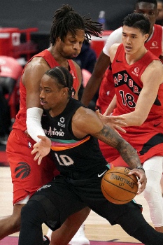スパーズは3連勝を逃して26勝27敗。デリック・ホワイト(26)が6本の3点シュートで25得点、デマー・デローザン(31)は2009年から9季在籍した古巣相手に19得点と11アシストをマークしたが後半でラプターズに競り負けた。