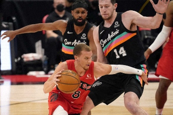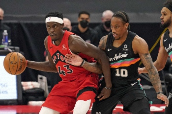 NBA東地区全体11位のラプターズは14日、準本拠地としているフロリダ州タンパで西地区全体9位のスパーズと対戦。2日連続の試合で休養となったカイル・ラウリー(35)、足首負傷のゲイリー・トレントJR(22)ら5選手を欠く陣容だったが、117―112(前半58―57)で勝利収めて22勝34敗。パスカル・シアカム(26)が20得点、10リバウンド、6アシストをマークすれば、OGアヌノビー(23)も22得点を稼ぎ、先発5人が3ケタ得点を挙げて3試合ぶりに白星をものにした。2日連続の試合の2試合目は今季1勝11敗だったが主力を欠きながらも2勝目。チーム・リバウンド本数は今季最多の54に達し、ホームでの連敗も3で阻止した。