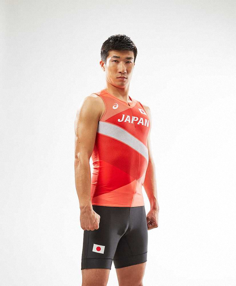 新たに発表された東京五輪用ユニフォームを着用した桐生(アシックス提供)