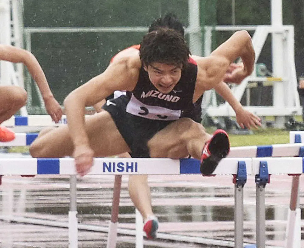 競技会の男子110メートル障害で13秒36をマークした金井