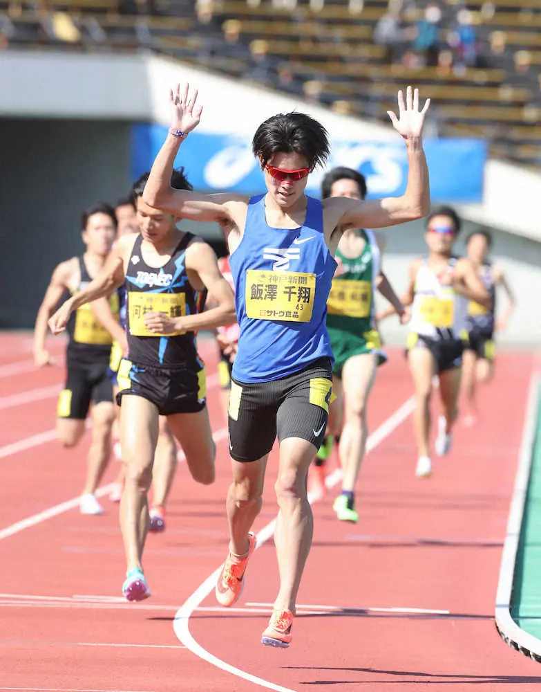 男子1500メートルは飯沢千翔(東海大)が3分45秒82で優勝した。昨季は故障でレースに出られなかったという飯沢は「復帰2レース目。スタート前は緊張で押しつぶされそうだったが、久々のトップはうれしかった」と笑顔を見せた。