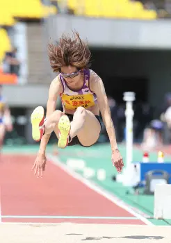 2本目は、追い風1・1メートルの公認で6メートル65をマークした。これが日本歴代4位タイとなる大ジャンプ。6メートル45だった自己記録を20センチ更新し、「早く歴代何位という称号がほしかったので、シンプルにうれしい」と声を弾ませた。