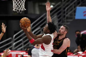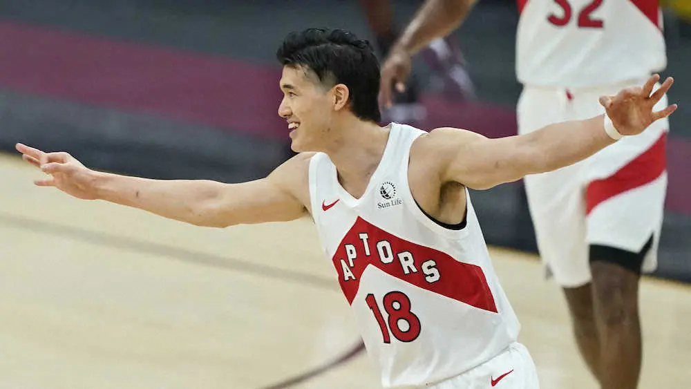 NBA東地区全体12位のラプターズは26日、準本拠としているフロリダ州タンパでキャバリアーズを112―96(前半49―48)で退けて26勝35敗。この日延長でスパーズに敗れた10位ウィザーズ(27勝34敗)に1ゲーム差と迫った。