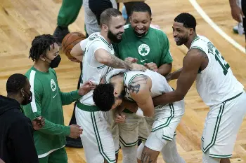 スパーズと対戦した東地区全体6位のセルティクスは、地元ボストン(マサチューセッツ州)で最大32点差のビハインドからを追いついて延長に持ち込み、143―140(前半48―77、延長15―12)で競り勝って34勝30敗。ジェイソン・テータム(23)が45分の出場でFGを37本中20本(うち3点シュートは7本中5本)、フリースローを17本中15本を決めて自己最多の60得点をたたき出し、チームの連勝に貢献した。