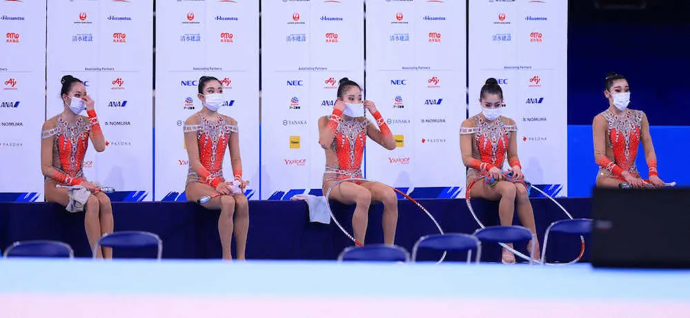 <新体操テストイベント>演技を終えスタッフが配るマスクを手にするフェアリージャパンPOLAの選手ら (撮影・白鳥 佳樹) Photo by スポニチ 東京五輪の新体操テスト大会実施、組織委員会から120人 ギャラリーで見る この記事のフォト 2021年05月08日の画像一覧 もっと見る 2021年05月08日の画像をもっと見る