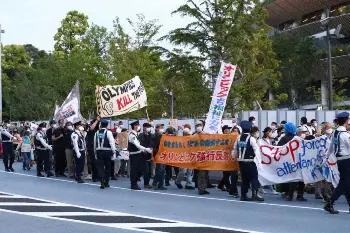 東京五輪中止求めるデモ行進が決行「今すぐ止めろ!」陸上テストイベント中の国立競技場周辺で