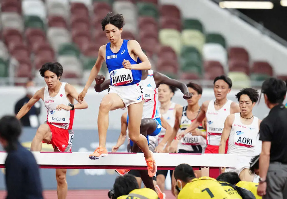 無観客で行われ、男子3000メートル障害は順大2年の三浦龍司(19)が8分17秒46の日本新記録で優勝した。順大の先輩である岩水嘉孝の日本記録を18年ぶりに1秒47更新し、8分22秒00の五輪参加標準記録も突破。五輪本番の会場で16年リオデジャネイロ五輪6位相当の好記録を叩き出し、初の五輪切符に弾みをつけた。