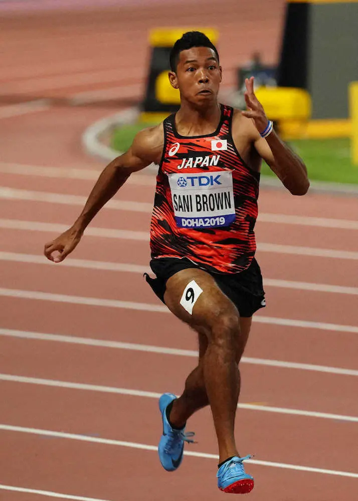 ▽19年世界選手権ドーハ大会のサニブラウン 男子100メートル予選は10秒09(追い風0.1メートル)で、6組3着。準決勝はスタートの号砲が「聞こえなかった」と大きく出遅れ、10秒15(向かい風0.3メートル)の1組5着で決勝を逃した。