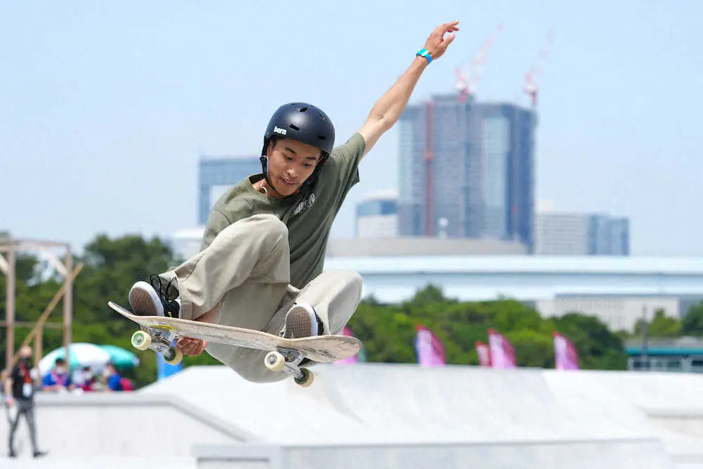 東京五輪に向けたスケートボードのテスト大会が5月13、14日に有明アーバンスポーツパークで行われ、主に24年パリ五輪を目指す男女19人の選手が参加した。コース完成後初めてのイベントで、本番での公平性を保つため東京五輪代表候補のトップ選手は参加しなかった。
