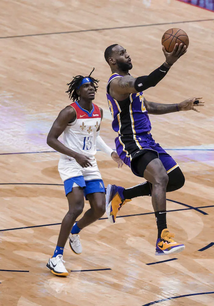 ペリカンズ戦で25得点をマークしたレイカーズのジェームズ(AP)