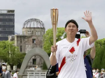 聖火リレー 広島・平和記念公園でトーチキス実施、カープOB新井氏ら参加