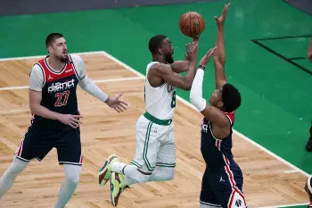 ウィザーズの3点シュートの成功率は今季35・1%(リーグ22位)だったがセルティクス戦では21本中わずか3本のみの成功で14・3%。ダビス・バターンズ(28)は放った7本をすべて失敗した。