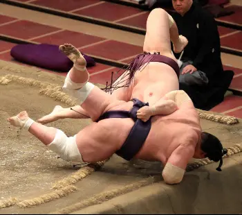 照ノ富士と遠藤の一戦は、白熱した取組となった。立ち合い後、遠藤に圧力をかけられた照ノ富士はしのぐ形に。劣勢も意地で巻き返し、遠藤を土俵際投げ掛けにいくとほぼ同時に倒れた。