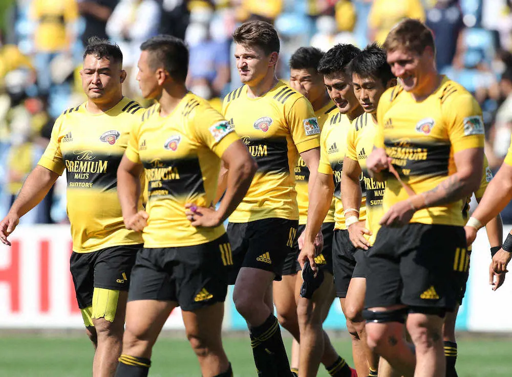 <サントリー・パナソニック>パナソニックに敗れ、肩を落とすバレット(中央)らサントリーフィフティーン(撮影・吉田 剛)