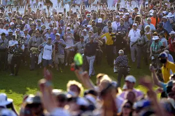 2位タイのケプカに恐怖の?18番 フェアウェーになだれこんだギャラリーに手術した右膝を押される