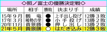 昨年11月場所では本割で勝った貴景勝に敗れるなど過去3度進出した優勝決定戦では一度も勝てなかった。そして前回、大関在位した14場所では賜杯を一度も抱けなかった。両膝のケガと内臓疾患で序二段まで落ちてから、カムバックしてかなえた優勝には格別の味があった。