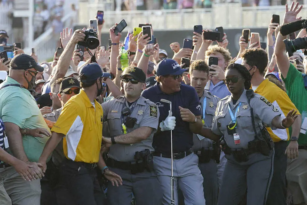 全米プロゴルフ協会(PGA・オブ・アメリカ=本部フロリダ州パームビーチガーデンズ)のセス・ワーCEOは24日、サウスカロライナ州キアワアイランド・リゾートで開催された全米プロでメジャー最年長優勝を果たしたフィル・ミケルソン(50)と、2打差の2位に入ったブルックス・ケプカ(31)の両選手、さらにキャディー2人に対して謝罪。「興奮気味のギャラリーを警備員たちが抑えきれなくなり、危ない目に合わせてしまった」として今後の警備体制を再考することを約束した。