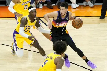 11年ぶりにポストシーズンに進出したサンズは30得点を稼いだデビン・ブッカー(24)らの活躍で1回戦突破に王手。ただし司令塔のクリス・ポール(36)が第3Q、レイカーズのウェズリー・マシューズ(34)にゴール下で押されて転倒した際に再び右肩を痛め、フリースローを決めたあとのプレーは見合わせた。