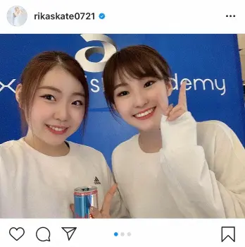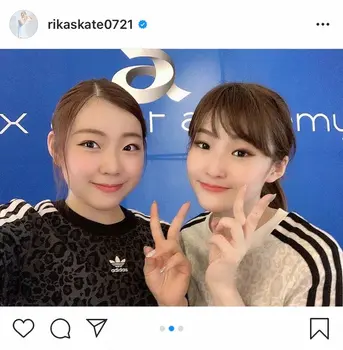 「踊ってみた第2弾お楽しみに」とコメントし、姉とお揃いの白いトップスや、アディダスのロゴが入った色違いのレオパード柄のトップス姿を着た自撮り写真をアップ。紀平は飲み物を片手に笑顔を見せたり、2人でピースサインをしたりと、姉妹の仲睦まじい様子がわかる。
