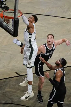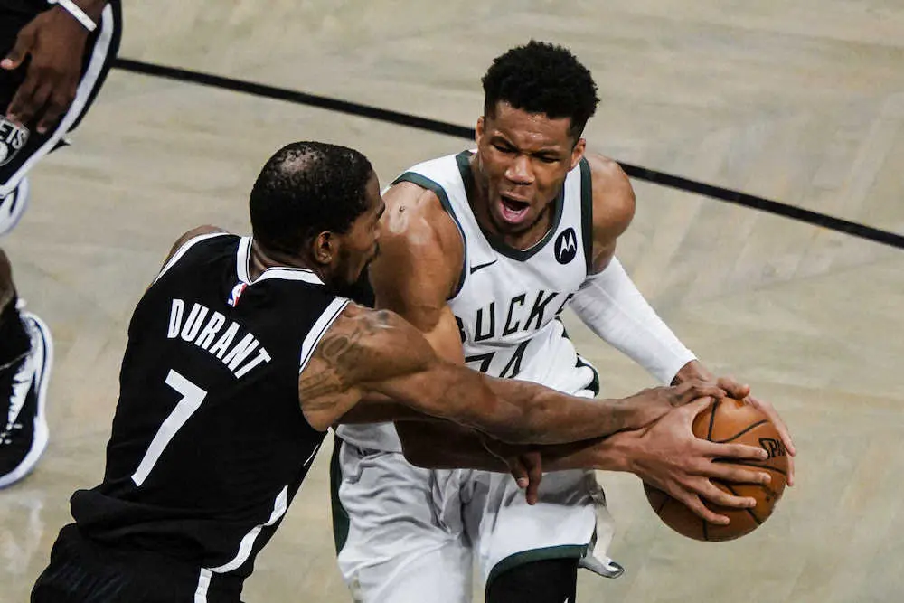 NBAは19日、ブルックリン(ニューヨーク州)で東地区準決勝の1試合を行い、第3シードのバックスが延長の末に115―111(前半47―53、延長6―2)で下して4勝3敗。2年ぶりに東地区決勝に駒を進め、47年ぶりのファイナル出場をかけて、20日に最終第7戦を行う76ers(第1シード)とホークス(第5シード)の勝者と顔を合わせることになった。