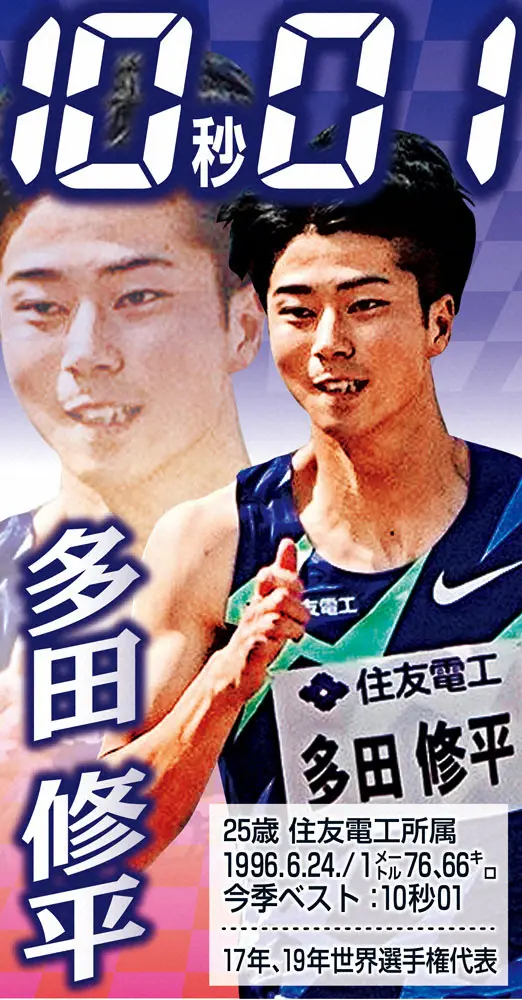 多田修平(25=住友電工)は四輪のレースに、1人だけバイクで出ているような急発進が武器だ。