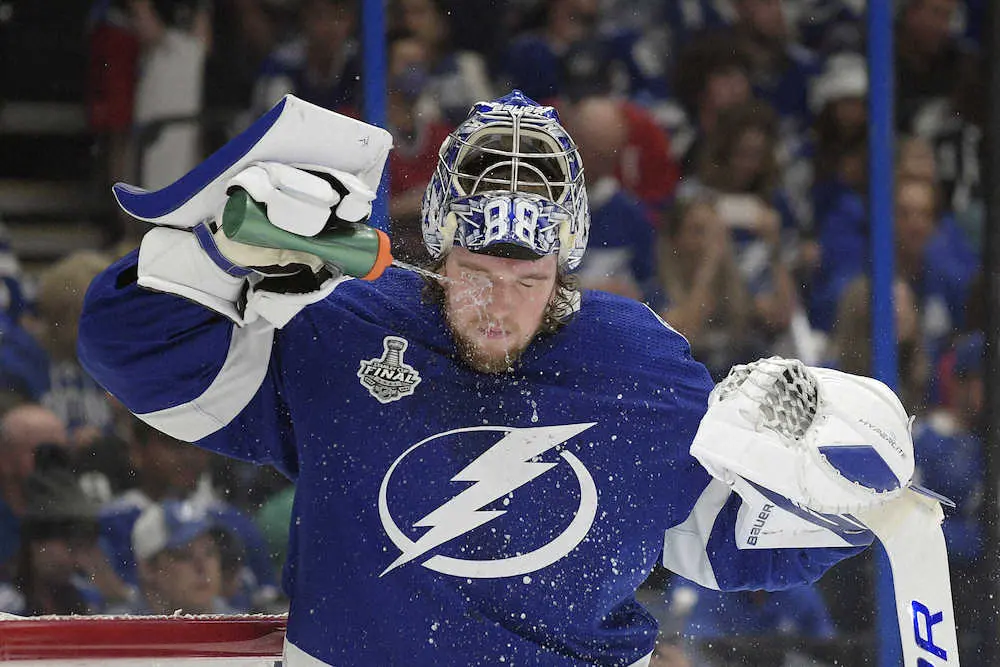 北米アイスホッケーリーグ(NHL)の王者を決めるスタンレー杯決勝が28日にフロリダ州タンパで始まり、セントラル・ディビジョン3位から勝ち上がった昨季覇者のライトニングが、5―1でノース・ディビジョン4位から進出したカナディアンズを下して地元での初戦を白星で飾った。今ポストシーズンで4完封を達成しているGKアンドレイ・バシレフスキー(26)は18セーブをマークして1失点のみ。1―2で迎えた最終第3Pには、RWニキータ・クチェロフ(28)の2ゴールなどで3点を追加して勝負を決めた。