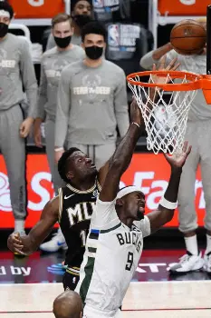 バックスでは2018年と19年両シーズンでMVPとなったヤニス・アデトクンボ(26)が第4戦で左膝を負傷。じん帯断裂など大きな故障にはつながらなかったものの、第5戦に続いて第6戦も出場登録から外れた。しかしクリス・ミドルトン(29)が32得点、ドリュー・ホリデー(31)が27得点と9リバウンド、9アシストをマークするなど東京五輪の米国代表コンビが活躍。第5戦でプレーオフ自己最多の33得点を記録したセンターのブルック・ロペス(33)は13得点、アデトクンボに代わって先発したボビー・ポーティス(26)も12得点と9リバウンドを稼いでアデトクンボの穴を埋めた。
