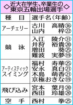 〇…近大は64年東京五輪に出場したボクシングの浜田吉次郎から16年リオデジャネイロ五輪までのべ55人の五輪戦士を輩出している。88年ソウル五輪から出場者が増え始め、シドニー五輪以降、急増した。種目で目につくのは、大多数を占める競泳とアーチェリー。競泳では入江陵介が東京五輪で4大会連続、アーチェリーでは古川高晴が5大会連続出場を決めており、経験豊富な先輩がいい手本となっている。