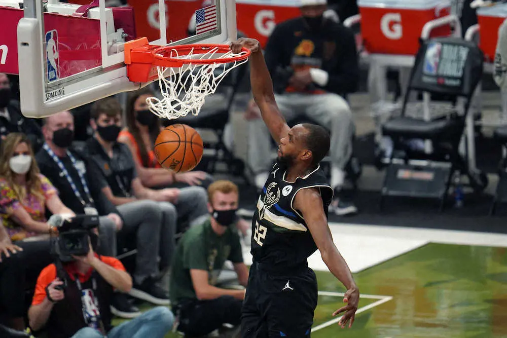 サンズのポールをマークするバックスのG・アデトクンボ(AP)