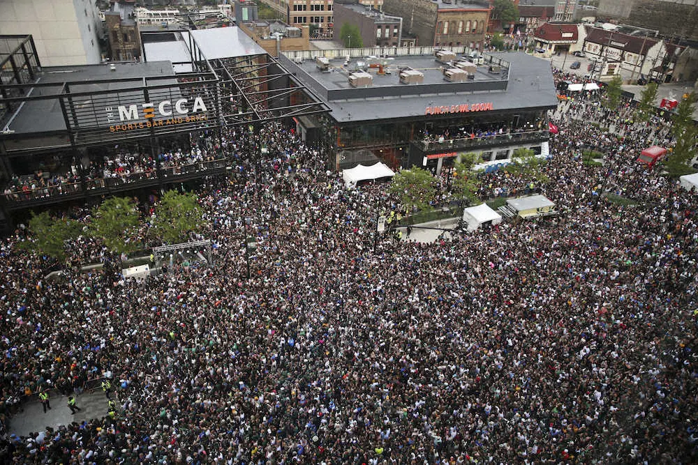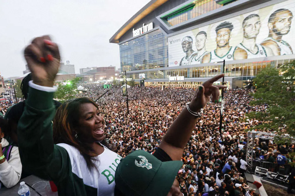 ミルウォーキーのファイサーブ・フォーラム周辺に集まった6万人を超えるバックスのファン(AP)