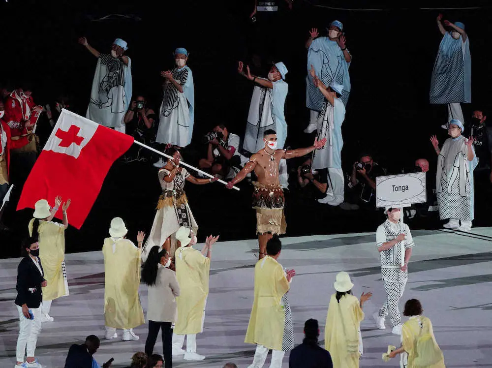 開会式の各国選手団入場で、トンガはテコンドー男子のピタ・タウファトフアが2016年リオデジャネイロ五輪、18年平昌冬季五輪に続いて旗手を務めた。