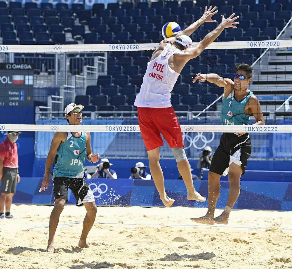 ウォシャクの速いサーブに崩され、カントルのブロックのブロックに封じられた。第1セットは15―21、第2セットは14―21だった。次戦は27日にルーポ、ニコライ組(イタリア)と戦う。1次リーグは24チームが参加し、6組に分けられて総当たり戦を実施。各組2位までと3位のうち4チームが決勝トーナメントに進む。
