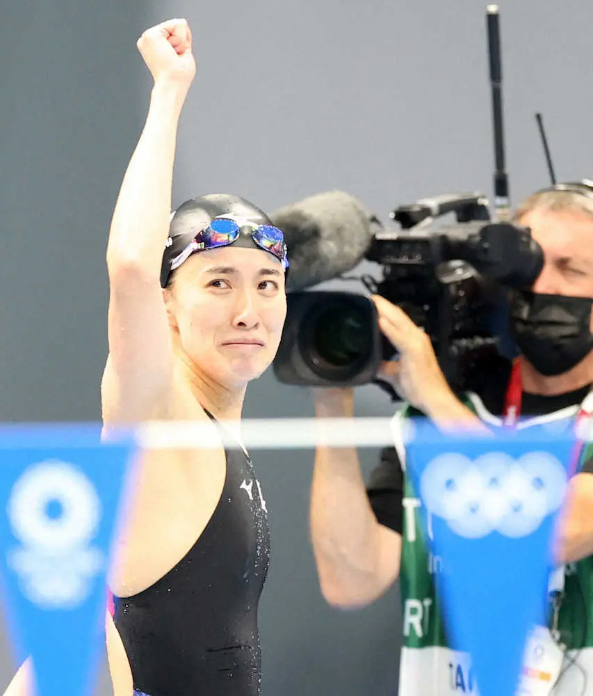 <東京五輪 競泳 女子400メートル個人メドレー決勝>金メダルを獲得し、涙ぐむ大橋悠依(撮影・北條 貴史)