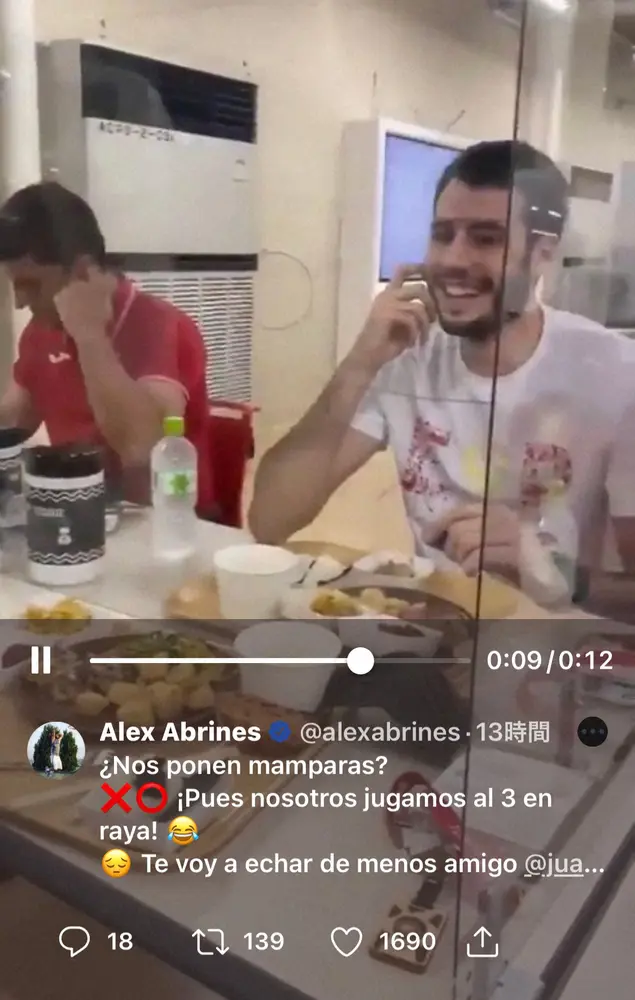 アレックス・アブリネス公式ツイッター(@alexabrines)より 選手村宿舎内部、食事の様子、ベランダから絶景…スペイン代表が秘蔵ショッ… ギャラリーで見る この記事のフォト 2021年07月26日の画像一覧 もっと見る 2021年07月26日の画像をもっと見る