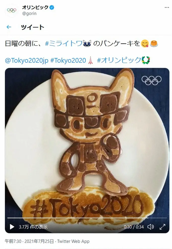 国際オリンピック委員会(IOC)公式ツイッター(@gorin)より 五輪公式マスコット「ミライトワ」のパンケーキに「食べるのがもったいな… ギャラリーで見る この記事のフォト 2021年07月26日の画像一覧 もっと見る 2021年07月26日の画像をもっと見る