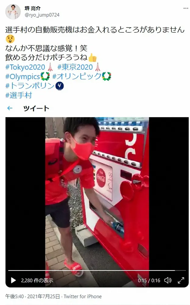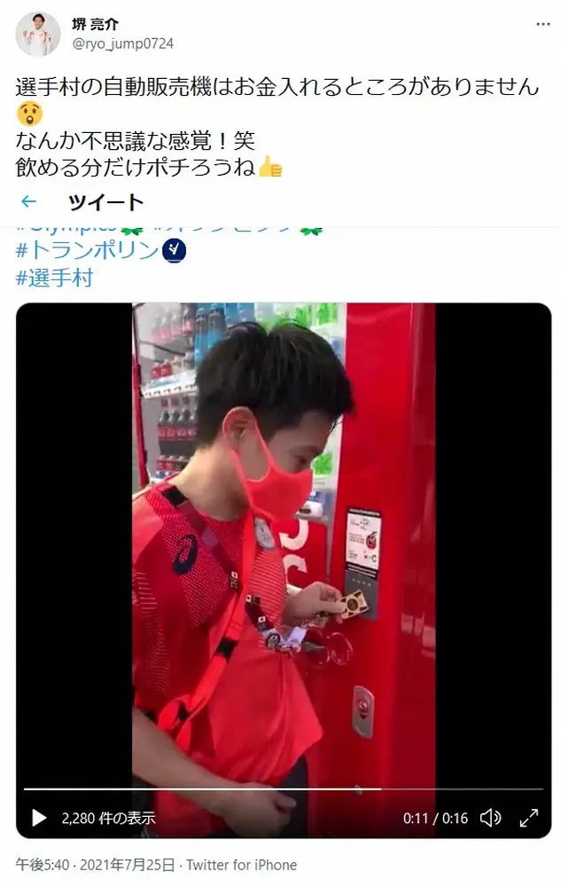 トランポリン・森ひかる公式ツイッター(@hikapoline)より トランポリン代表選手「不思議な感覚」選手村の無料自販機公開 「さすが… ギャラリーで見る この記事のフォト 2021年07月26日の画像一覧 もっと見る 2021年07月26日の画像をもっと見る