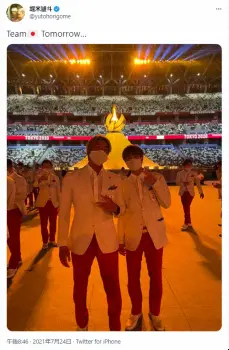 23日の開会式に出席し、五十嵐らと交流。「Team日本 Tomorrow…」と記し、24日にはツイッターで2ショットも公開。五十嵐も自身のインスタグラムで同じ写真をアップしていた。