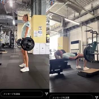 ストーリーズの機能では、バーベルを持ち上げてトレーニングに励む様子を投稿。その他にも、おにぎりやお好み焼き、ラーメン、枝豆などの日本食を公開した。