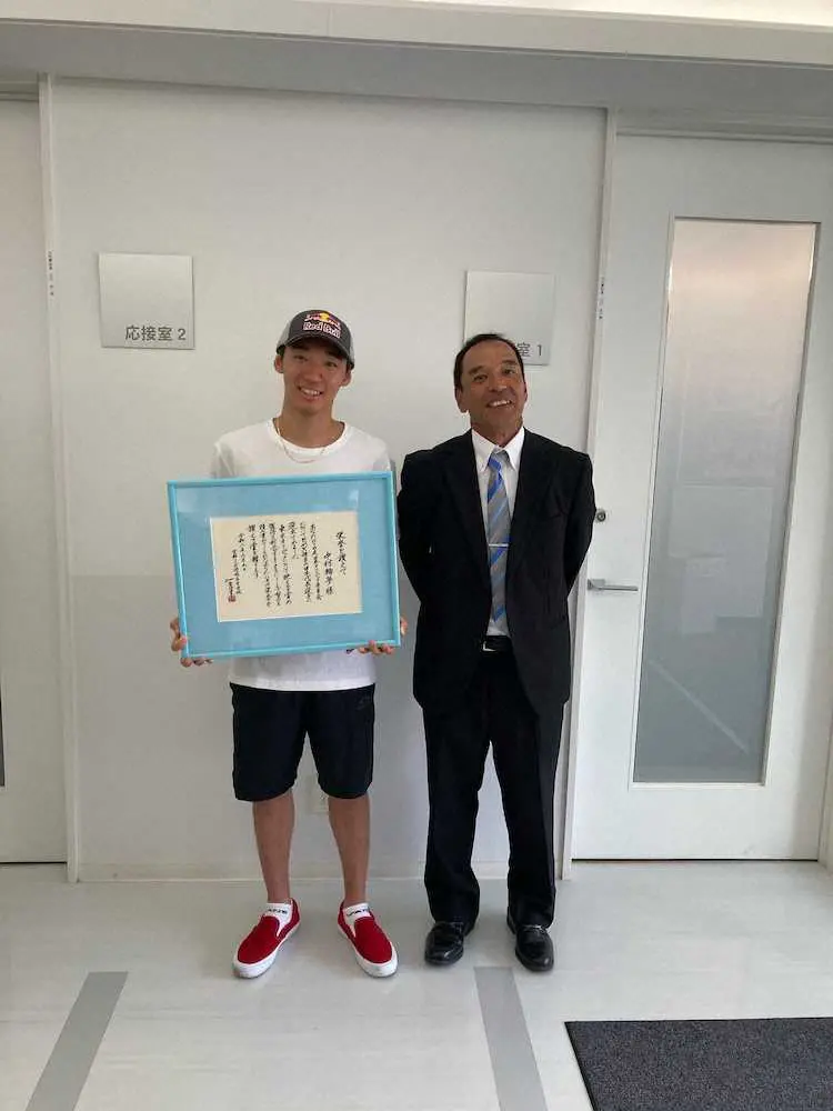 森本先生は輪夢の1、2年時の担任で、教科は英語を担当した。同校は通信制で、レポートや面接指導を行う単位制高校。Jリーガーなど、プロを目指すアスリートが多く通う。海外遠征や国内大会の多い輪夢も中学でプロに転向。同校に進んだ。「忙しくて、登校は年間30日程度だった」と森本先生。卒業は出席日数が少なかったことでギリギリ。令和2年3月の卒業式には遠征で出席できず、同6月に1人だけの特別卒業式に臨んだ。「五輪代表決定の賞状を持ってきました。自慢なんかしない子が嬉しそうでした」と大舞台出場の報告に、2人で大喜びした。
