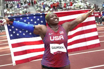 女子砲丸投げで銀メダルを獲得したレーベン・ソーンダーズ(AP)
