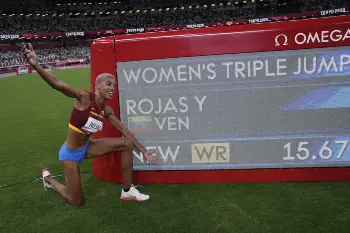 女子三段跳びのベネズエラ代表ユリマル・ロハス(25)が1日の決勝で15メートル67の世界新記録でベネズエラ陸上界初の金メダルを獲得した。