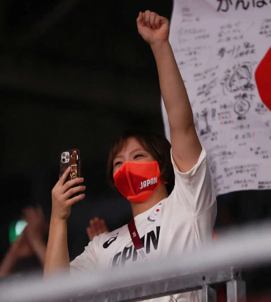<東京五輪 レスリング 女子57キロ級決勝>姉妹で金メダリストとなり笑顔で日の丸を手にする川井梨紗子(撮影・北條 貴史) Photo by スポニチ レスリング・川井梨紗子「こんないい日があっていいのかと…」 姉妹同時金… ギャラリーで見る この記事のフォト 2021年08月05日の画像一覧 もっと見る 2021年08月05日の画像をもっと見る