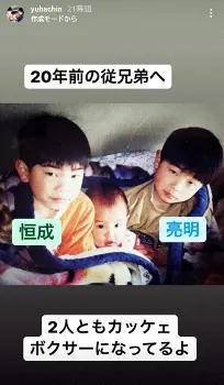 横井は試合目には20年前の自身と田中、田中の弟でボクシングの元世界3階級制覇王者の田中恒成(26)の写真を投稿し「2人ともカッケェボクサーになってるよ」とつづり、試合前から応援を呼び掛けていた。