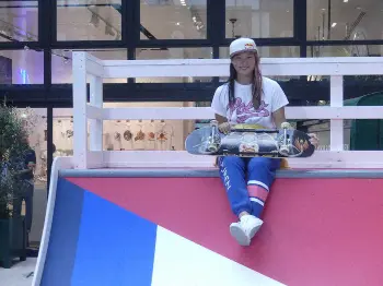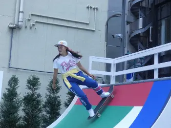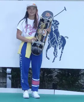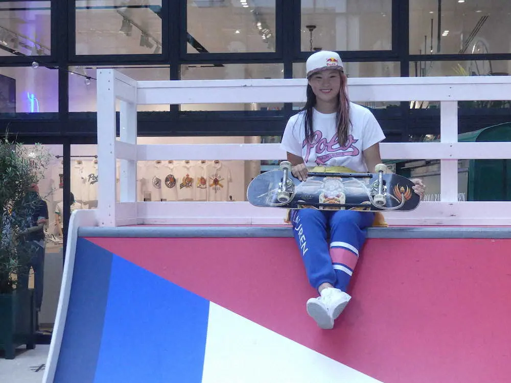 初代女王に輝いてから取材対応やあいさつ回りに引っ張りだこで、「まだ練習もできていなかった」と反響の大きさを実感。スケートボードスクールを開催する店舗併設の赤、青、白、緑のブランドカラーに彩られたランプ(だ円を半分に切った形の練習場)で五輪後の初滑りを披露し「とても可愛いし、このランプ持って帰りたいです」と声を弾ませた。